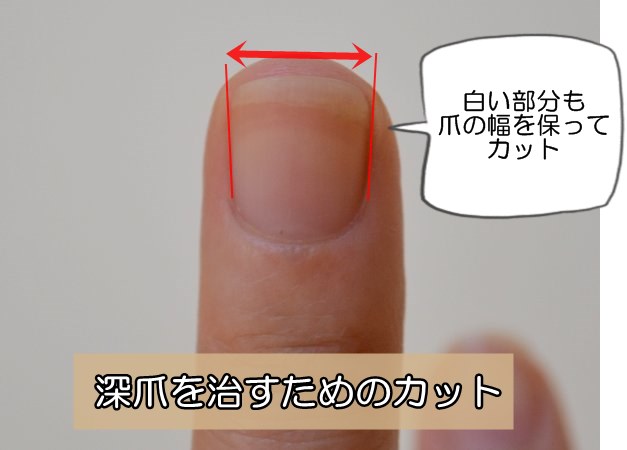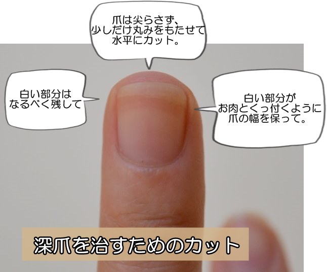 本来の爪の幅に整えてやらないと、うまく爪と指の肉がくっつきませんので注意が必要なの。爪の幅が本来の爪の幅より、狭くてもだめ、広くなってもだめです。